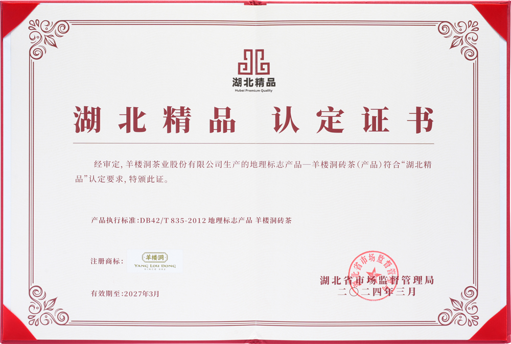 湖北精品认定证书(羊楼洞)