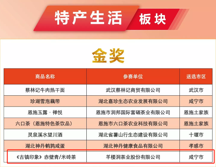 5月25日,2025年湖北旅游商品大赛暨中国旅游商品大赛湖北选拔赛圆满落幕,湖北茶发集团旗下羊楼洞茶业携“羊楼洞”品牌产品参赛,古镇印象赤壁青?米砖茶凭借深厚的历史文化底蕴和独特的醇厚风味从众多参赛商品中脱颖而出,荣获特产生活板块金奖产品称号。