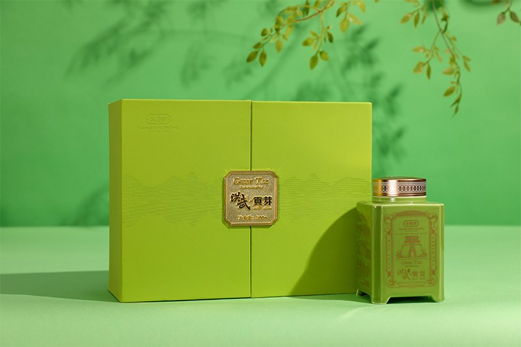 With single-bud tea sourced from Xuefeng Ecological Tea Graden under Yang Lou Dong brand before Pure Brightness as the raw material, the product is processed by famous green-tea masters. The buds appear full and uniform in shape, dark green in color. The tea soup smells good and tastes a bit sweet. The ceramic container should be kept in cold temperature. The outer package has a gorgeous outlook. With superior inner and outer quality, the product is an ideal choice for gift presentation.